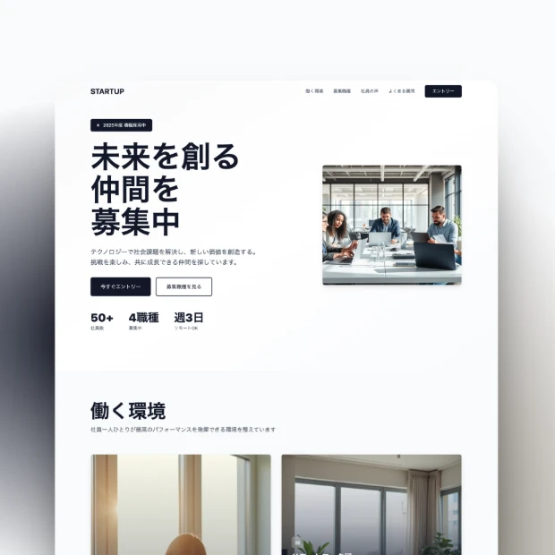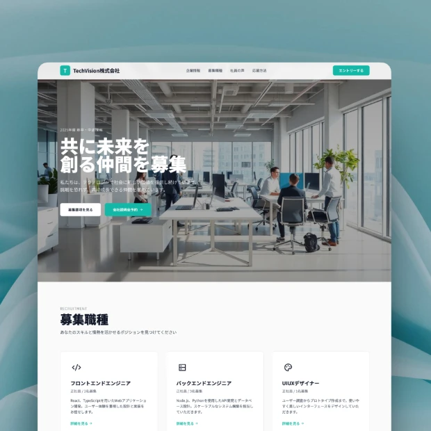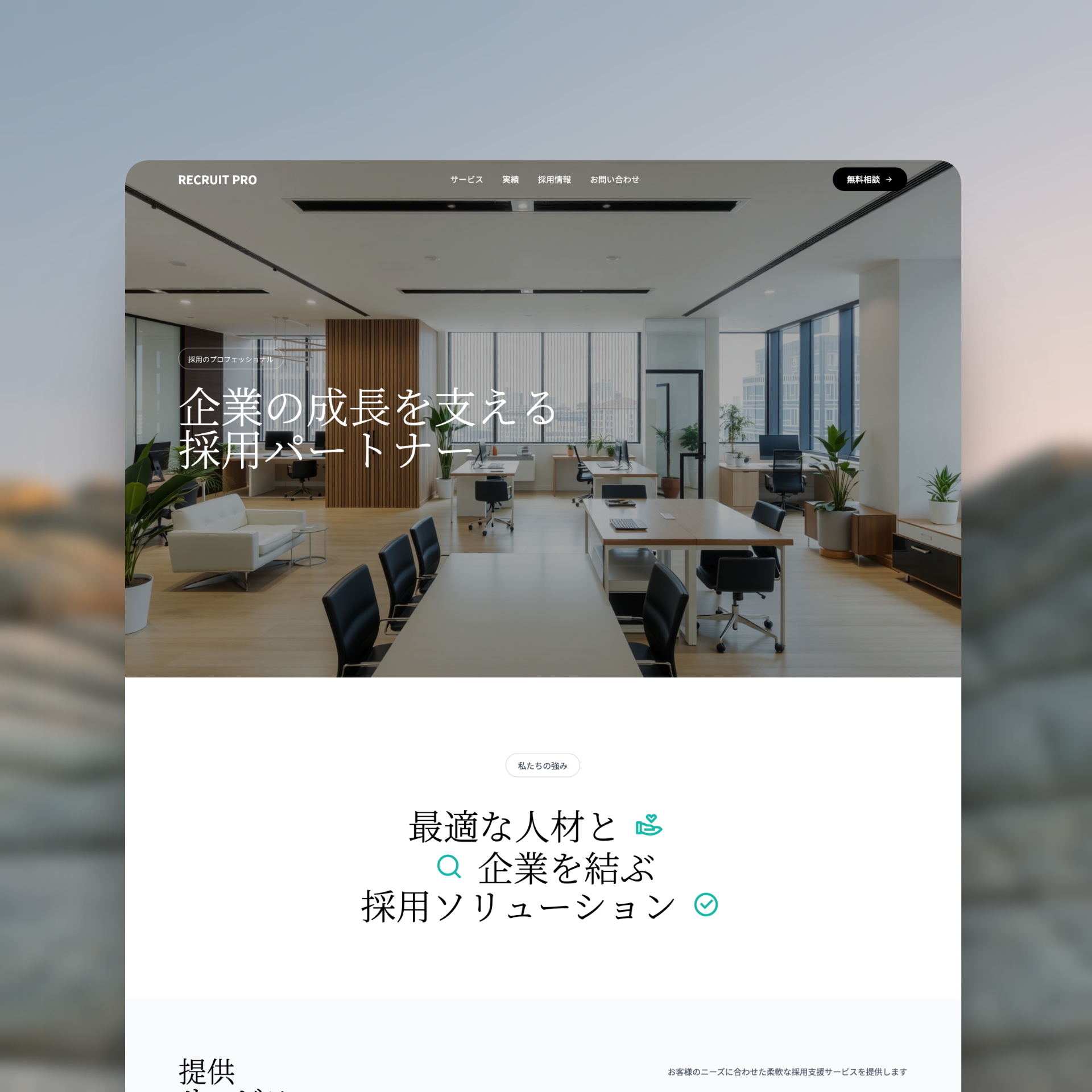 コーポレートサイト、採用サイト、ランディングページとして幅広い業種に対応しています。IT、サービス業、製造業など、多くの企業でご利用いただけます。