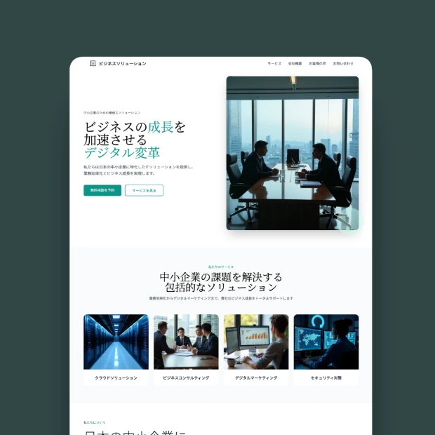会社情報、サービス内容、実績を美しくまとめ、信頼感のあるサイトをすぐに構築。Readdyのテンプレートで、初心者でも簡単にプロ仕様のホームページを作れます。