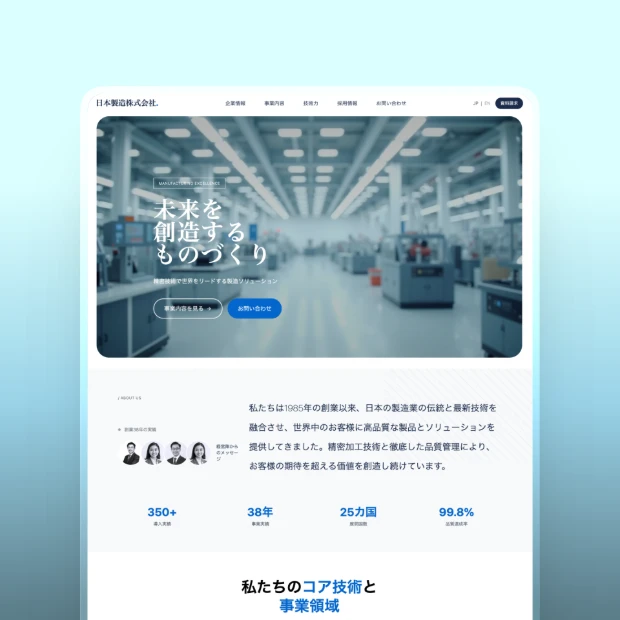 実店舗やサービスを提供する企業向け。アクセス情報、サービス紹介、予約フォームなど、顧客が求める情報を直感的に表示できます。