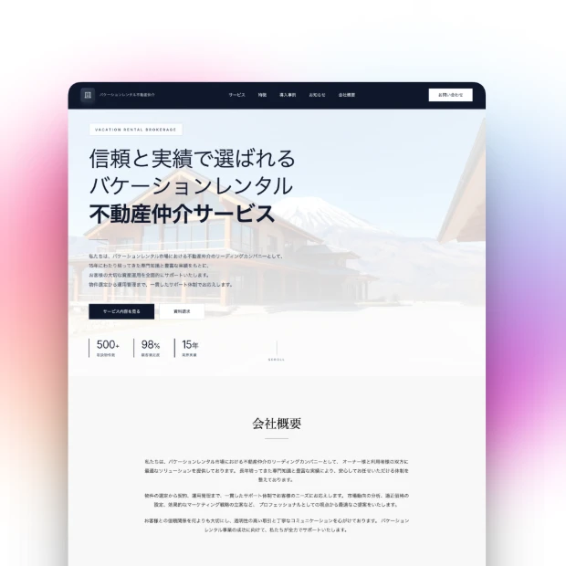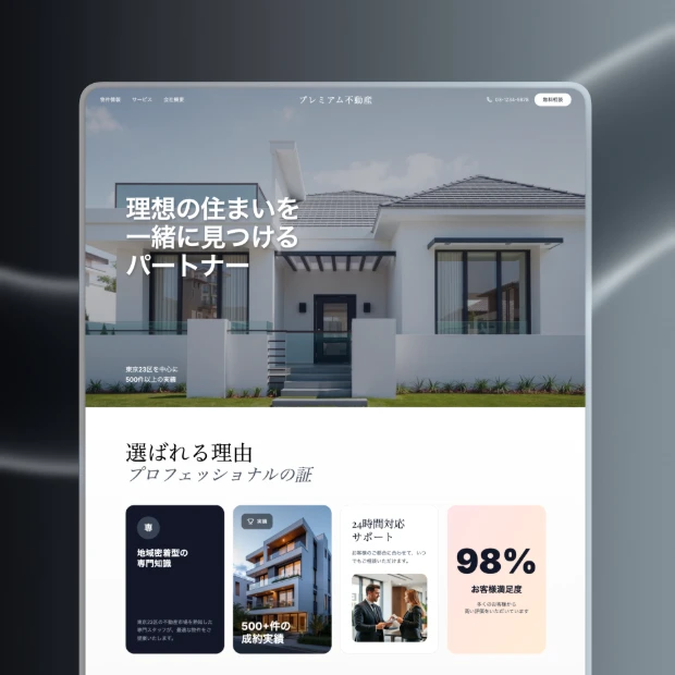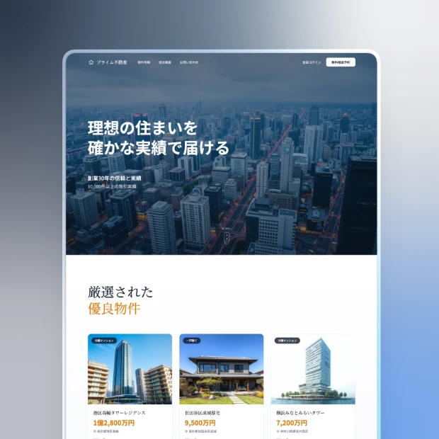 不動産仲介、エージェント、商業用物件、管理会社向けに最適化されたデザインで、訪問者に信頼感を与え、成約率を高めます。