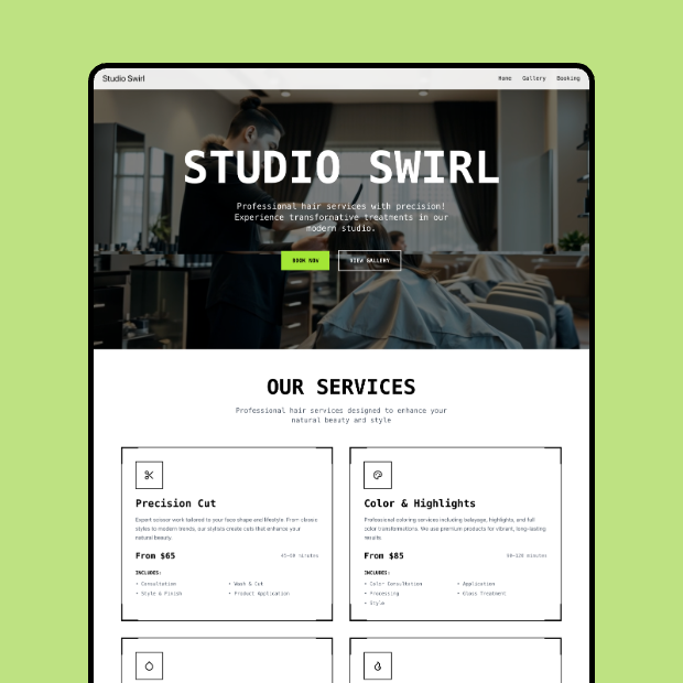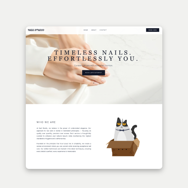 Create a polished, fully custom website in minutes — no code, no plugins, no complexity.