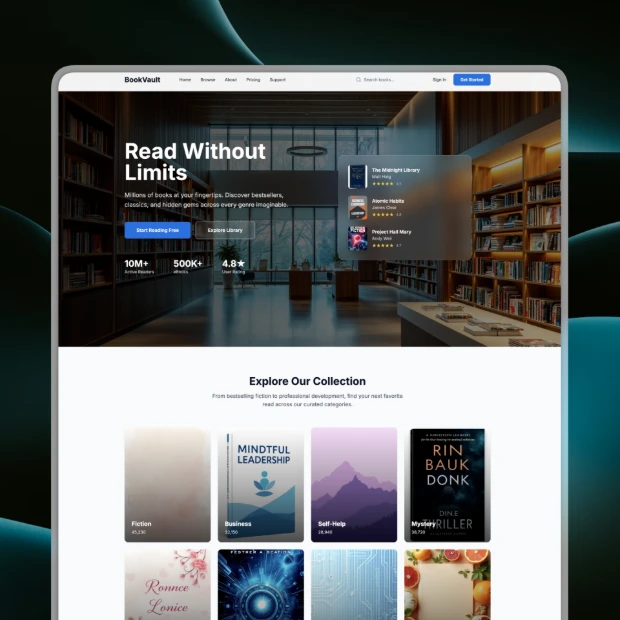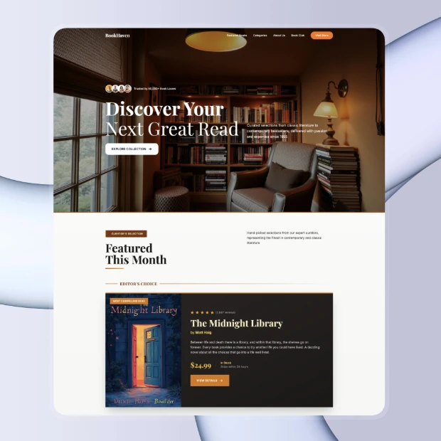 Clean, book-centric layouts allow customers to browse vast collections by genre, author, or price without feeling overwhelmed.