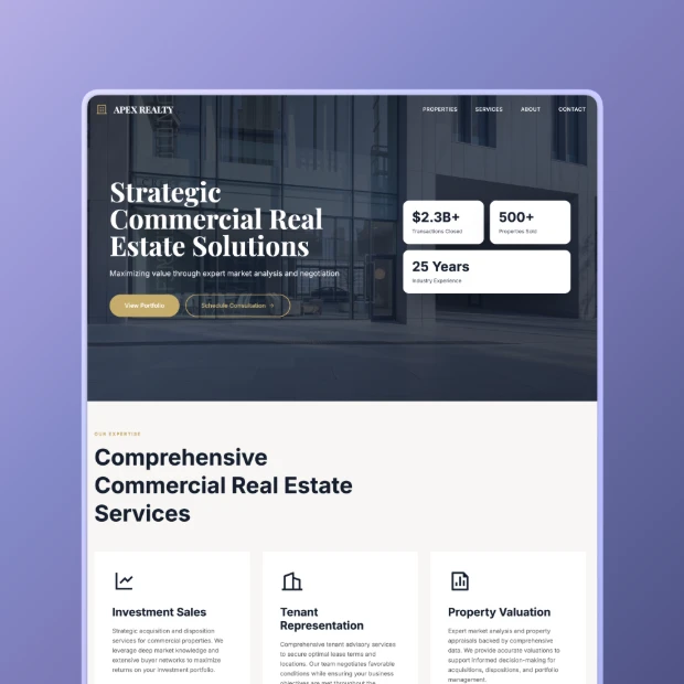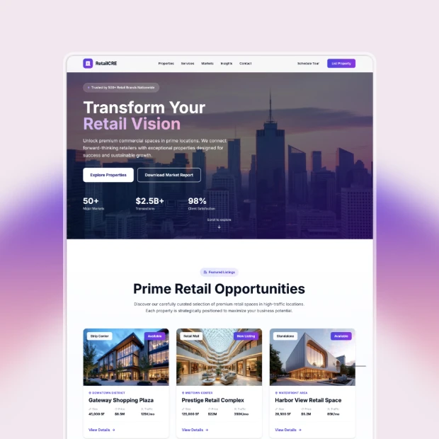 "Commercial real estate websites serve a different audience than residential platforms. Your visitors are investors, business owners, and decision-makers who value clarity, structure, and credibility."