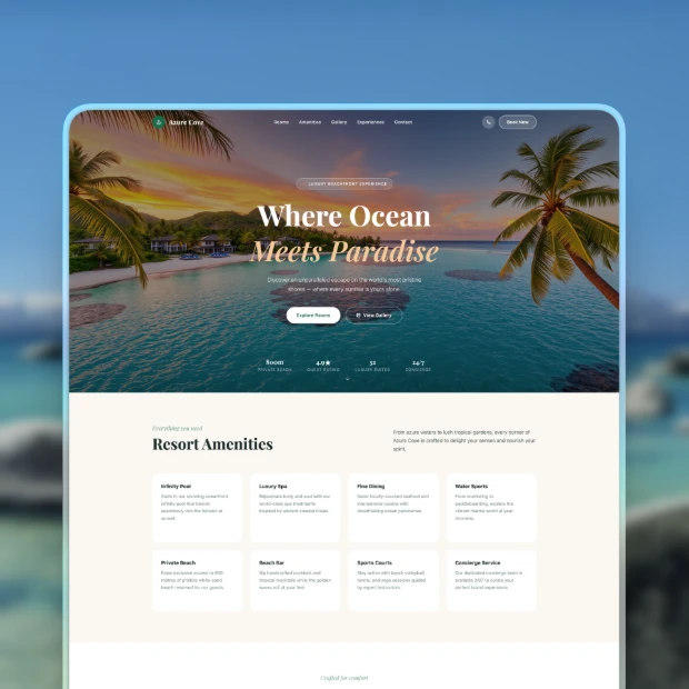 A hotel website should make it easy for guests to explore your property and book directly. With AI-powered templates, you can showcase rooms, highlight amenities, and present availability clearly. Whether you run a boutique hotel or a larger property, these layouts are designed to support direct reservations and reduce reliance on third-party platforms.